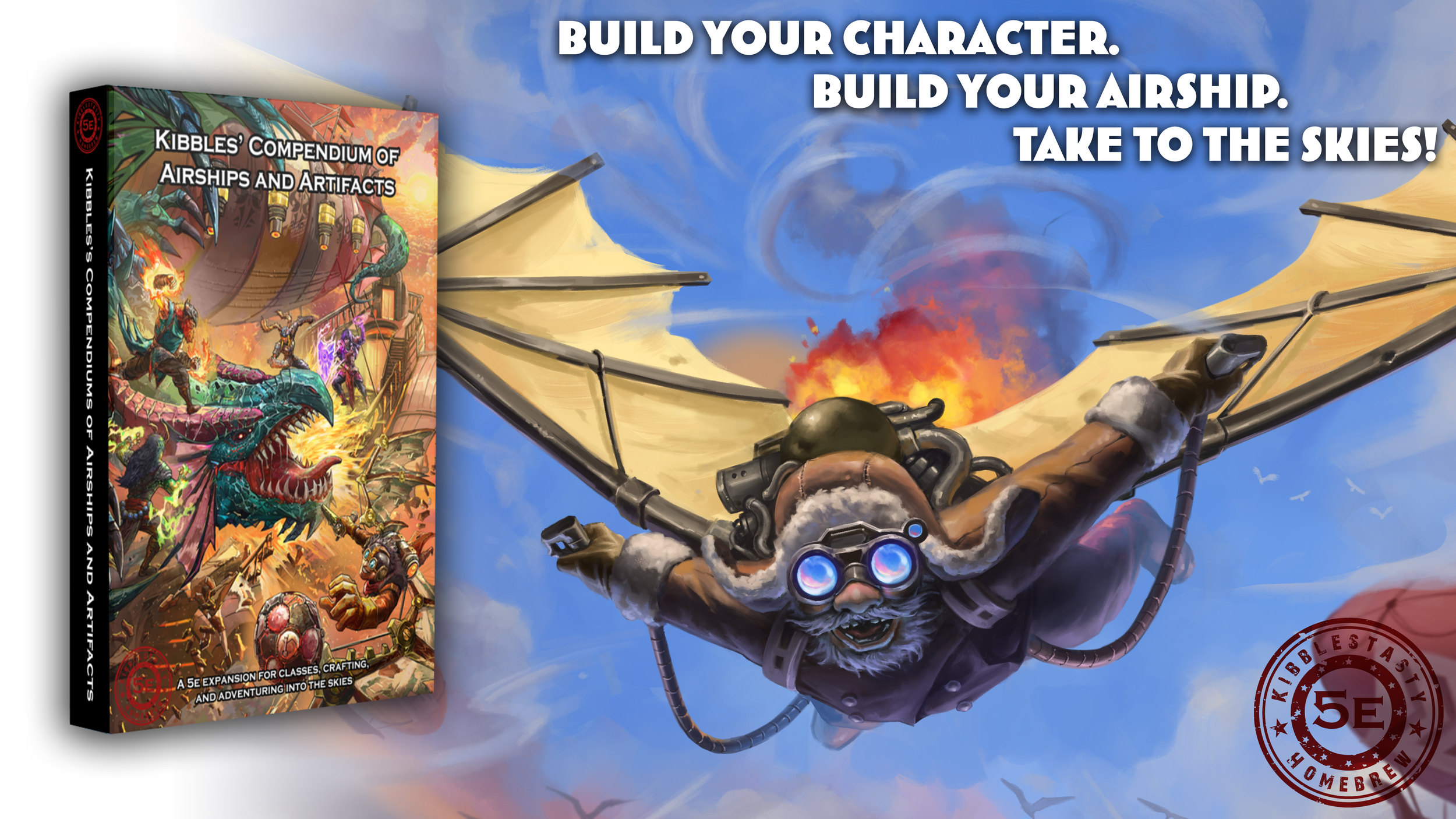 Want to sign up to be notified of KibblesTasty’s future Kickstarters? Enter your email to get on the notification list. Next Kickstarter is Kibbles’ Compendium of Airships and Artifacts. With two new classes, expanded modular crafting system, 30+ new subclasses, and a new system for airships, it has plenty to take your next adventure to the next level!